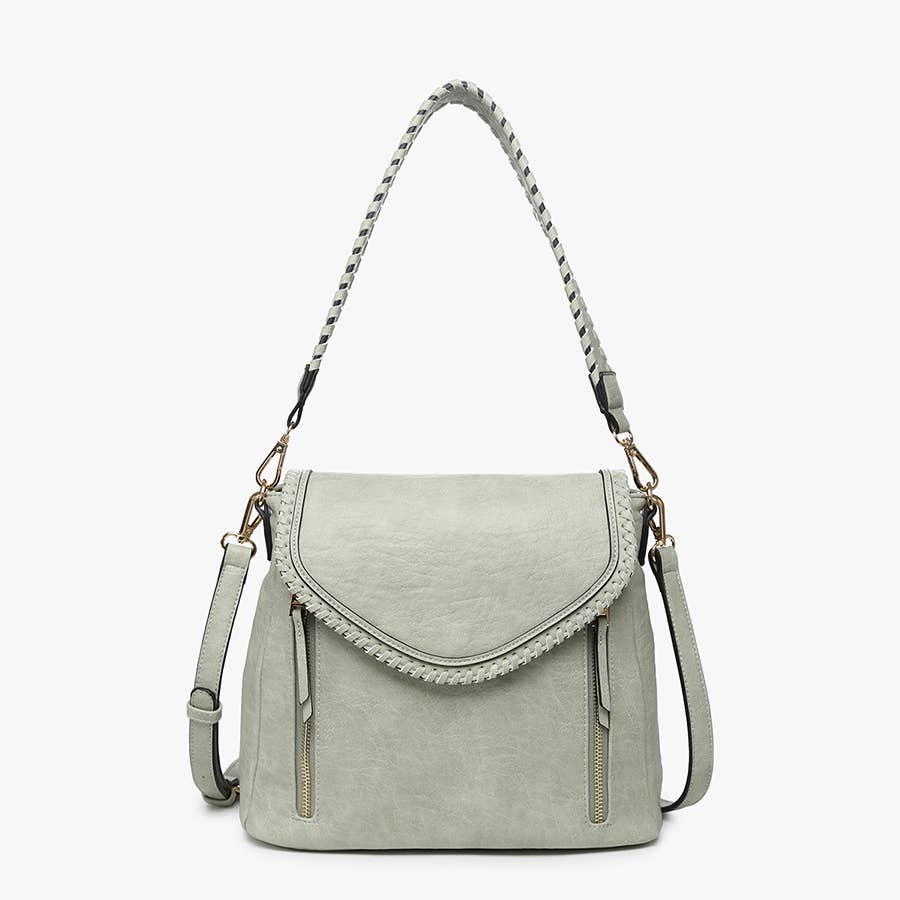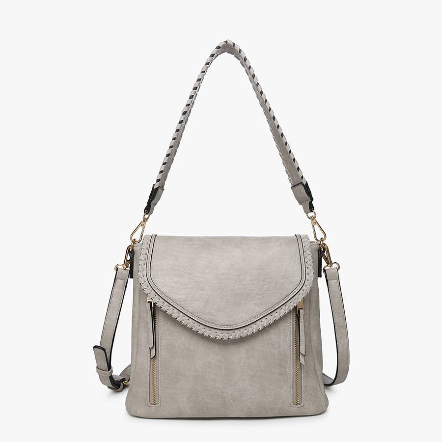 Lorelei Double Zip Whipstitch Trim Crossbody offers both style and functionality for your everyday needs. The braided edge flap over with snap closure adds a touch of elegance and ensures the security of your belongings.