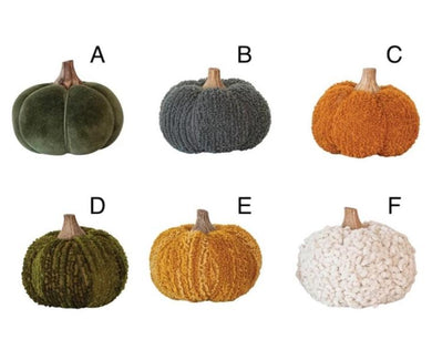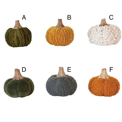 Small Cotton Blend Bouclé/Velvet Pumpkin w/ Wood Stem