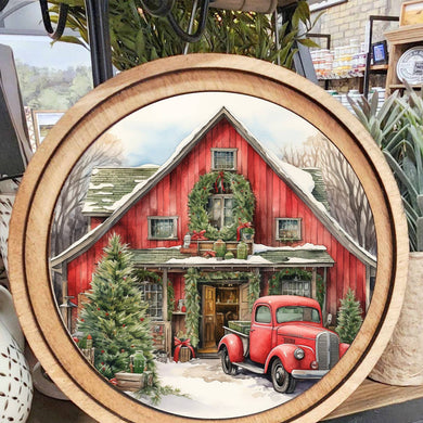 Round Red Christmas Barn Art