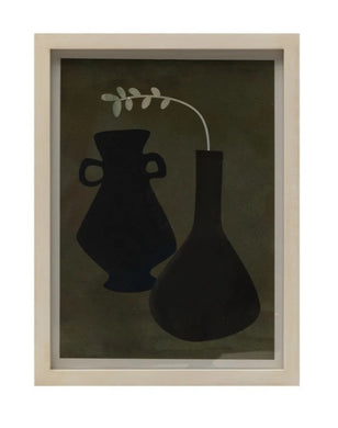 Wood Framed Glass Wall Decor w/ Modern Vase & Floral