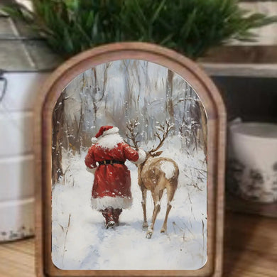 Arch Top Santa with Reindeer Framed Art