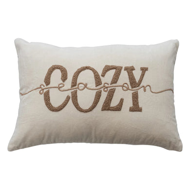 Textured Lumbar Pillow with Embroidery & Fringe "Joy"