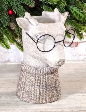 Beige Metal Wide Decorative Vase with Black Metal Stand