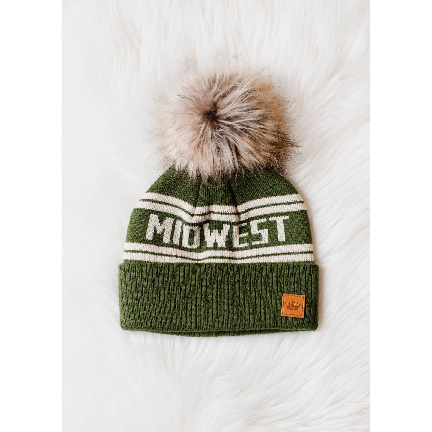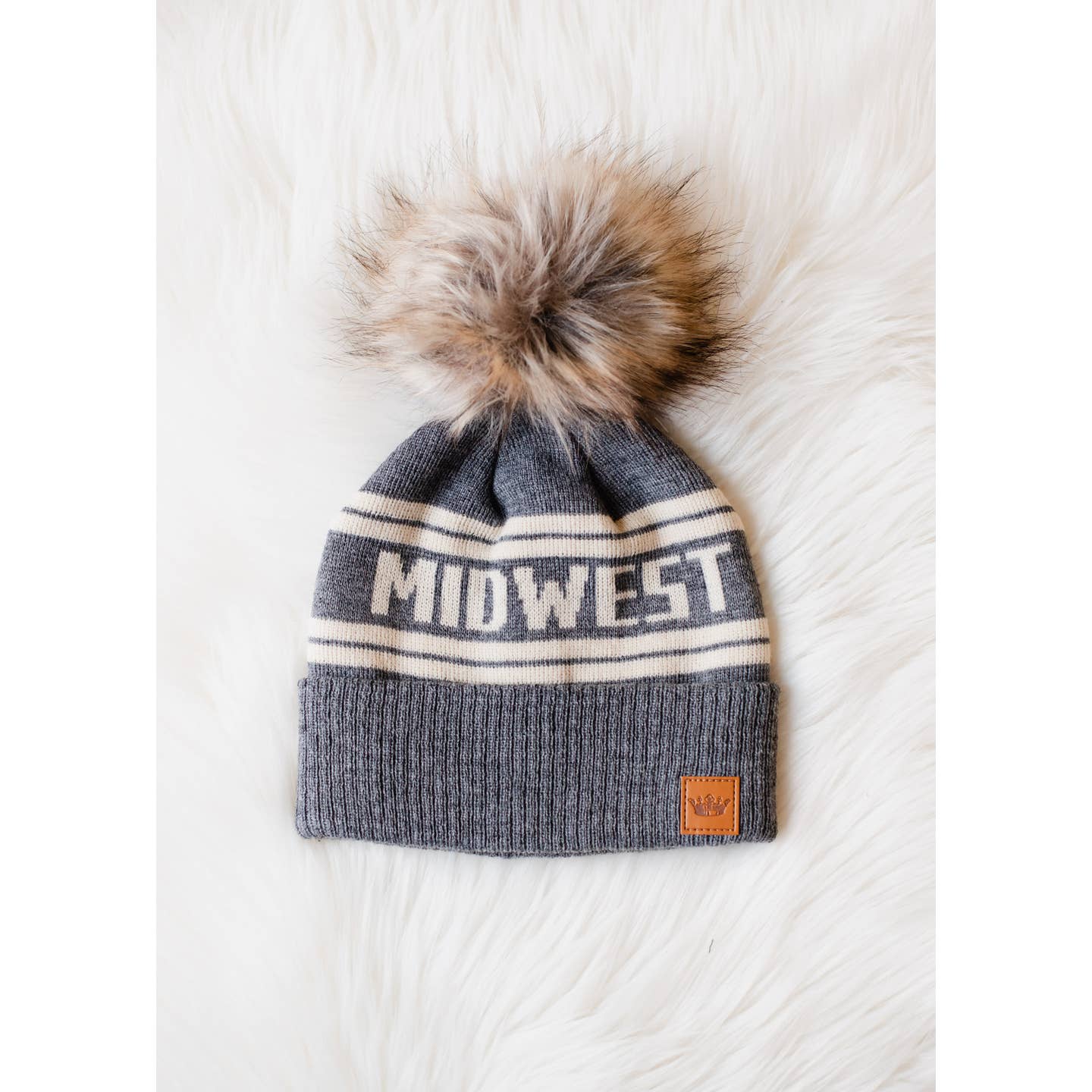 Midwest stocking hats with natural faux fur pom accent.